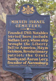 The Mikveh Israel Cemetery is the oldest Jewish cemetery in Philadelphia. It was established as a private burial ground in 1738 by Nathan Levy on land granted to him by the Penn family. In 1774 it was deeded to the Mikveh Israel Synagogue, the only Jewish house of worship that continued to function in the colonies during the Revolution.